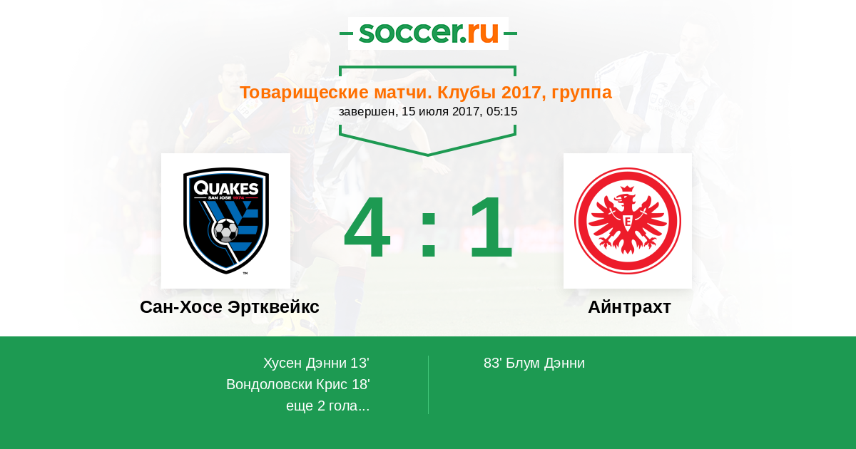 Протокол матча Сан-Хосе Эртквейкс против Айнтрахт