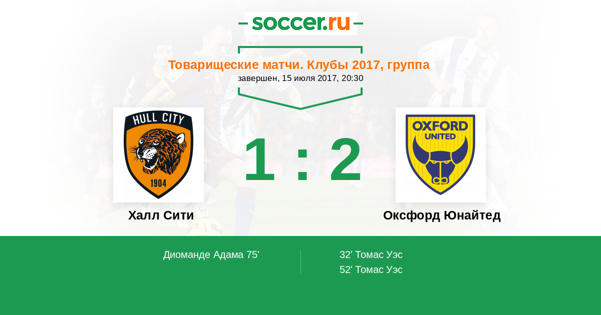 Протокол матча Халл Сити против Оксфорд Юнайтед