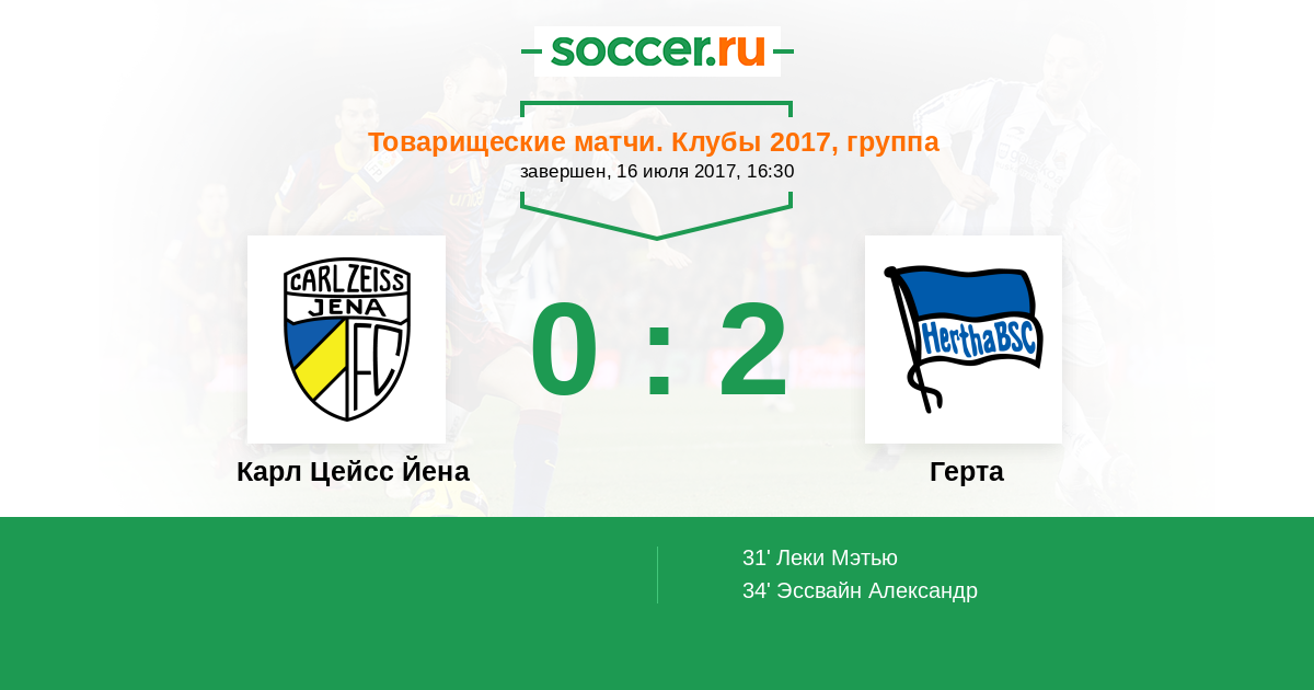 Протокол матча Карл Цейсс Йена против Герта