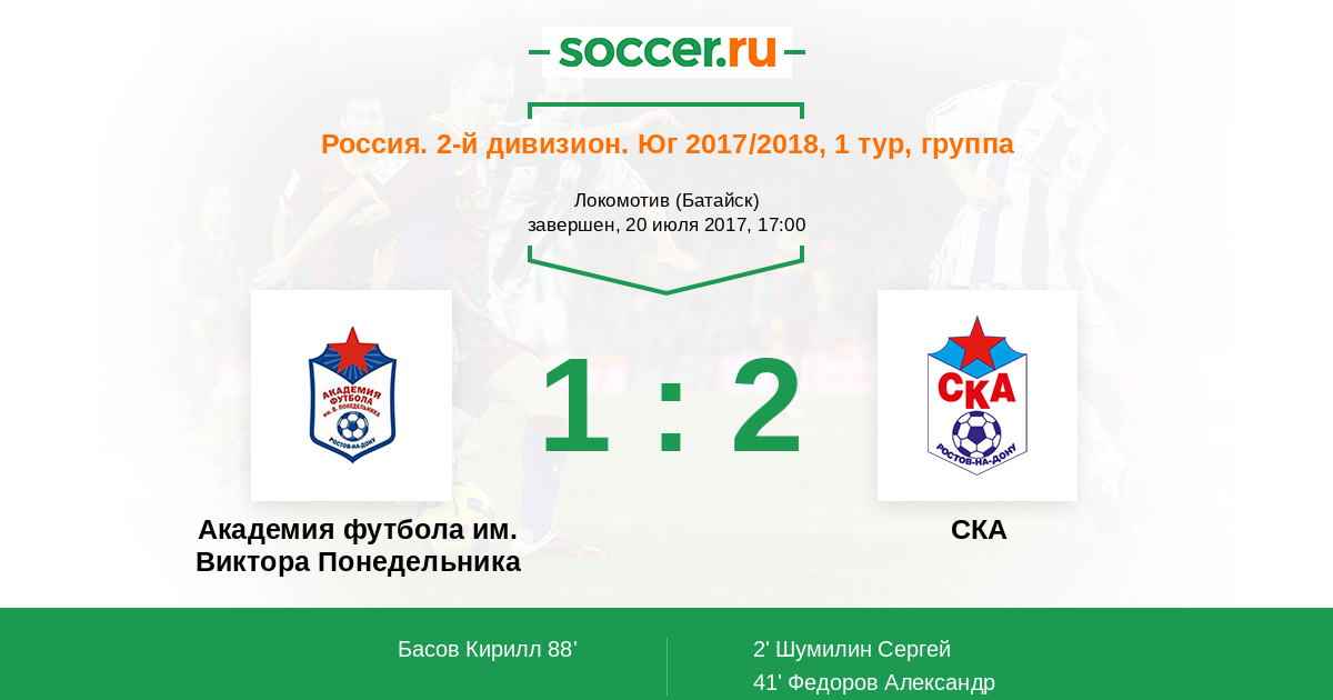 Протокол матча Академия футбола им. Виктора Понедельника против СКА