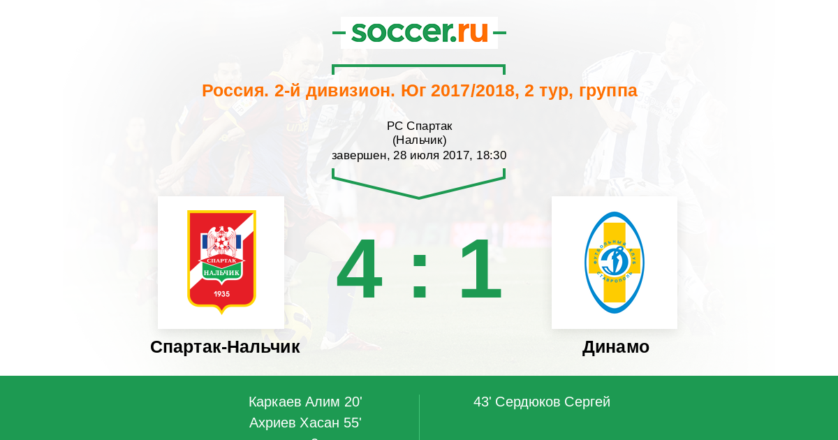 Протокол матча Спартак-Нальчик против Динамо Ставрополь