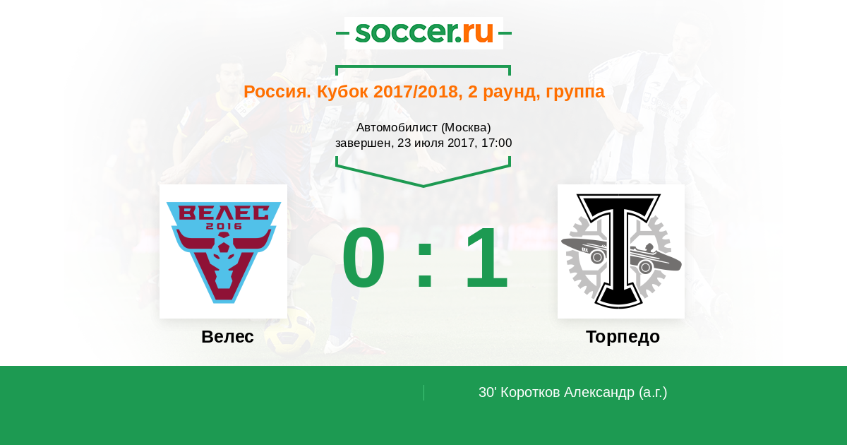 Протокол матча Велес против Торпедо