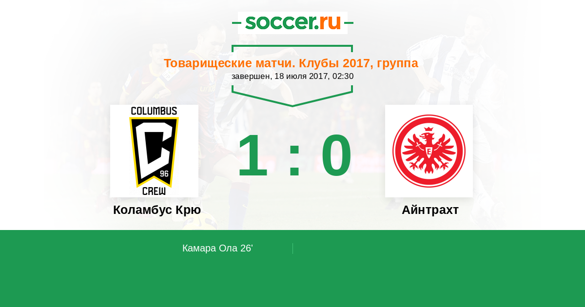 Протокол матча Коламбус Крю против Айнтрахт