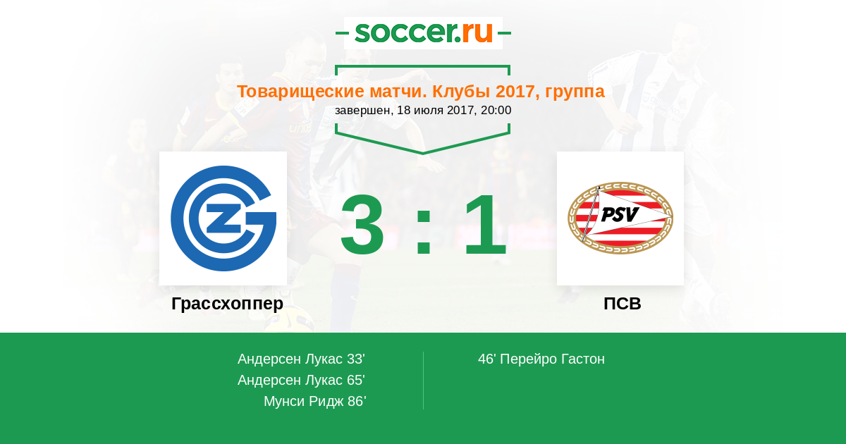 Протокол матча Грассхоппер против ПСВ