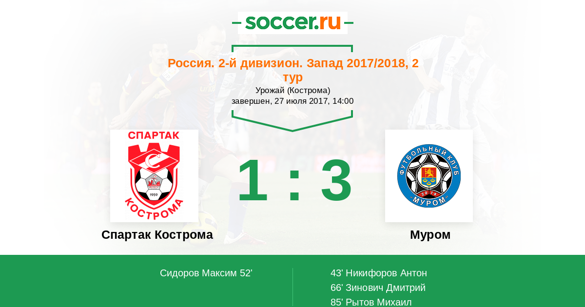 Протокол матча Спартак Кострома против Муром