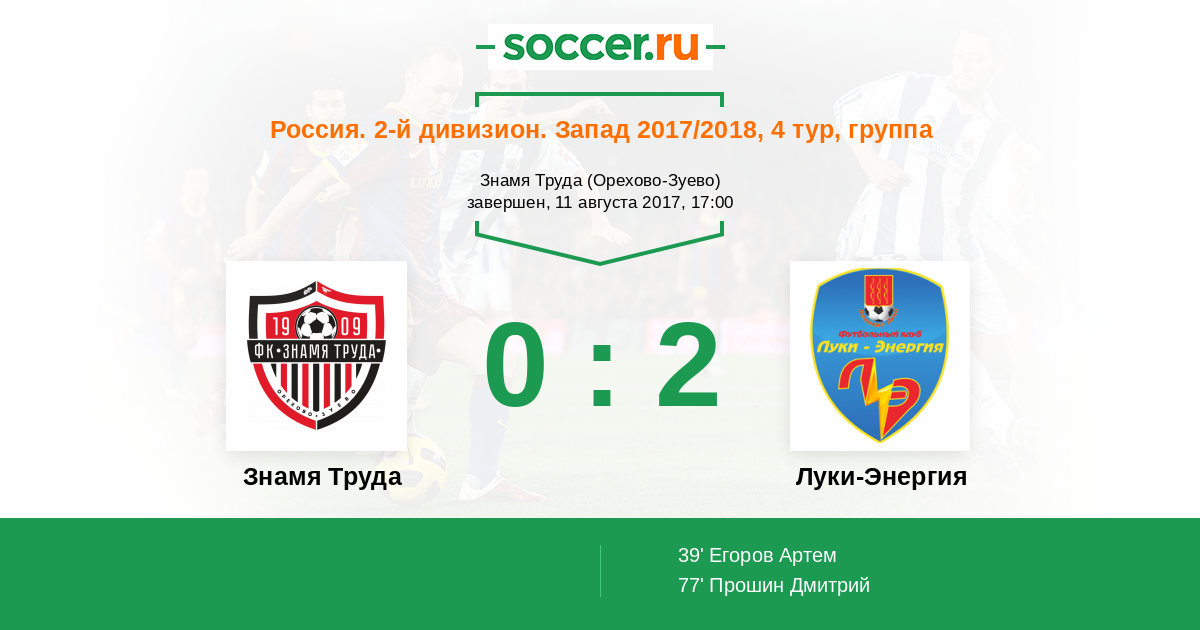 Протокол матча Знамя Труда против Луки-Энергия