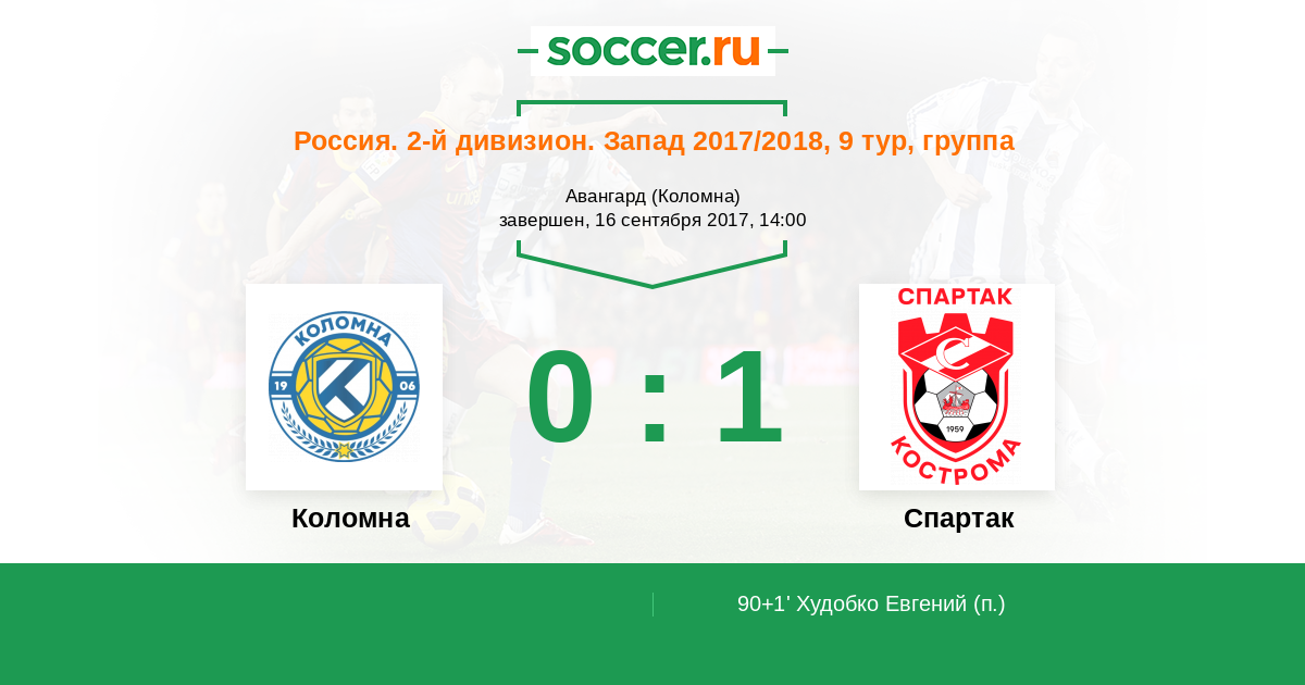 Протокол матча Коломна против Спартак Кострома