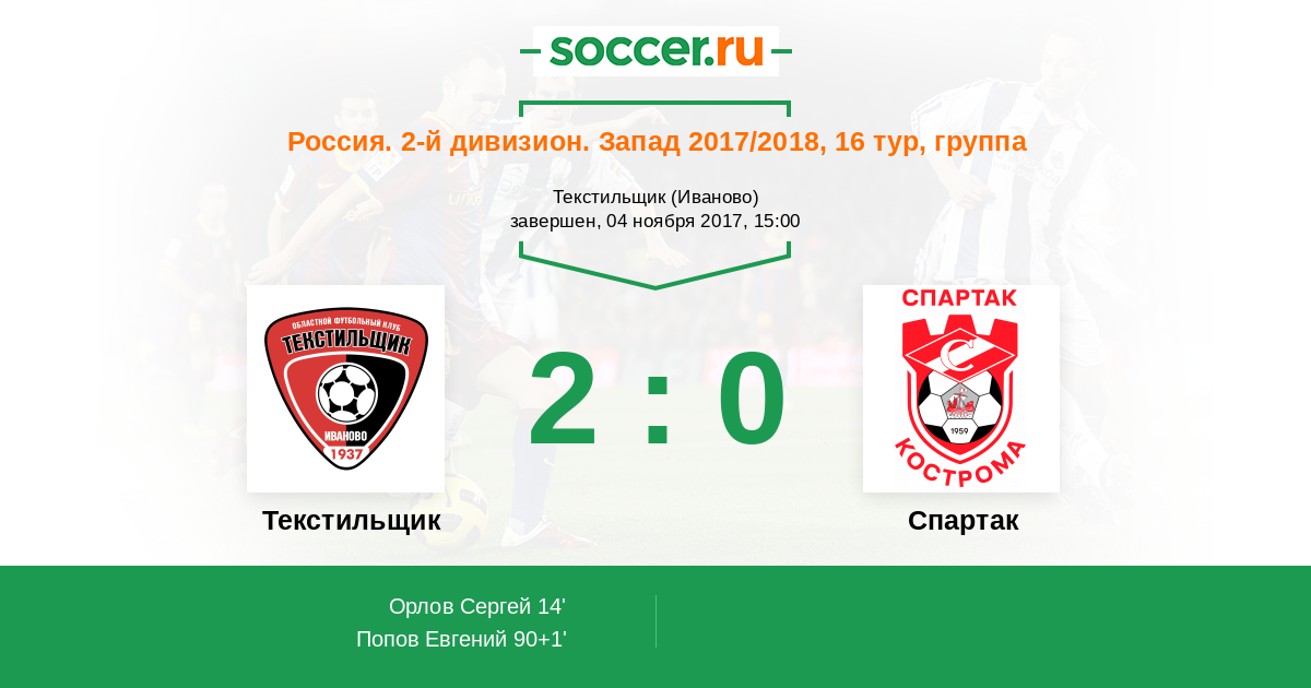 Протокол матча Текстильщик против Спартак Кострома