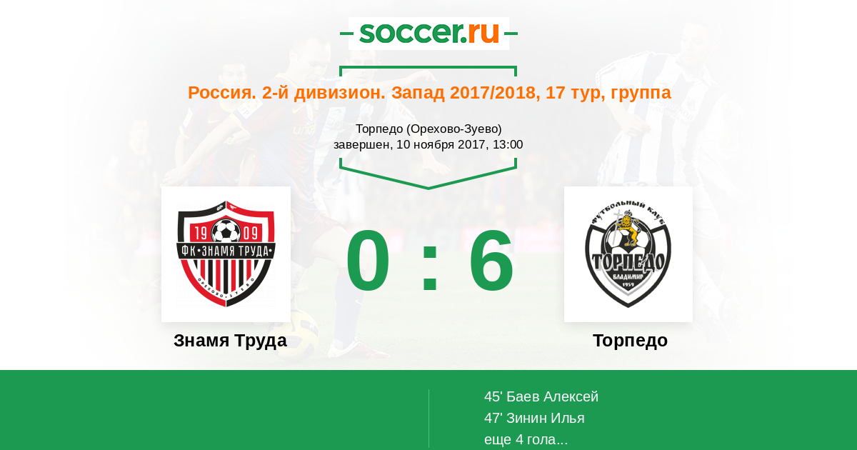 Протокол матча Знамя Труда против Торпедо
