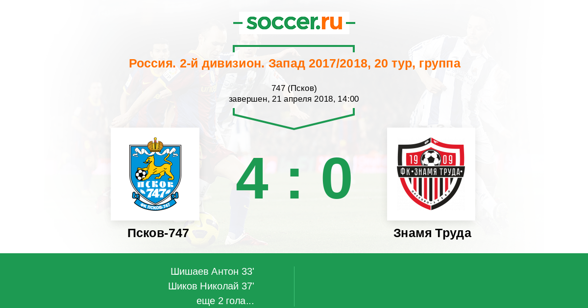 Протокол матча Псков-747 против Знамя Труда