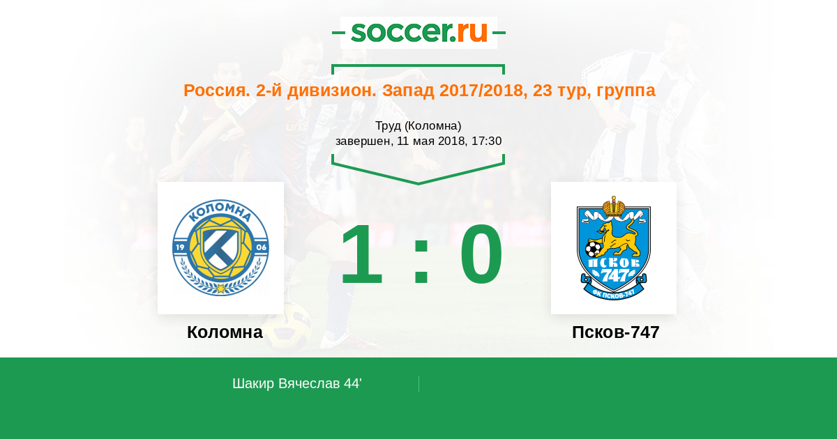 Протокол матча Коломна против Псков-747