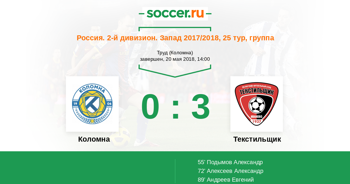 Россия. 2-й дивизион. Запад 2017/2018, 25 тур