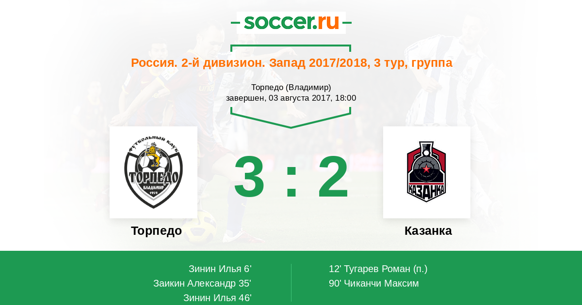 Протокол матча Торпедо против Казанка