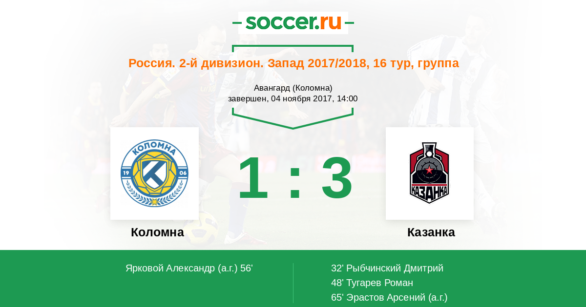 Протокол матча Коломна против Казанка