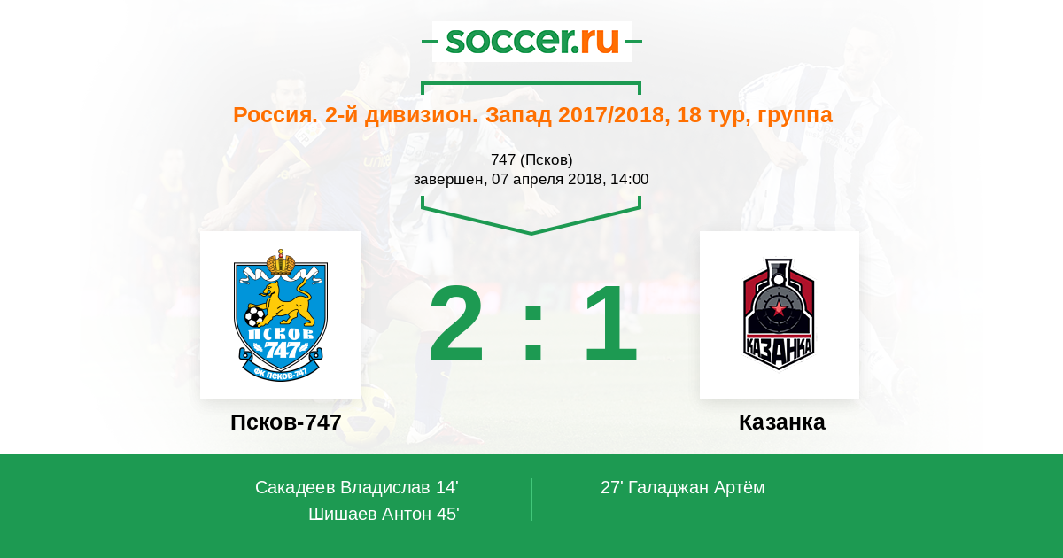 Протокол матча Псков-747 против Казанка