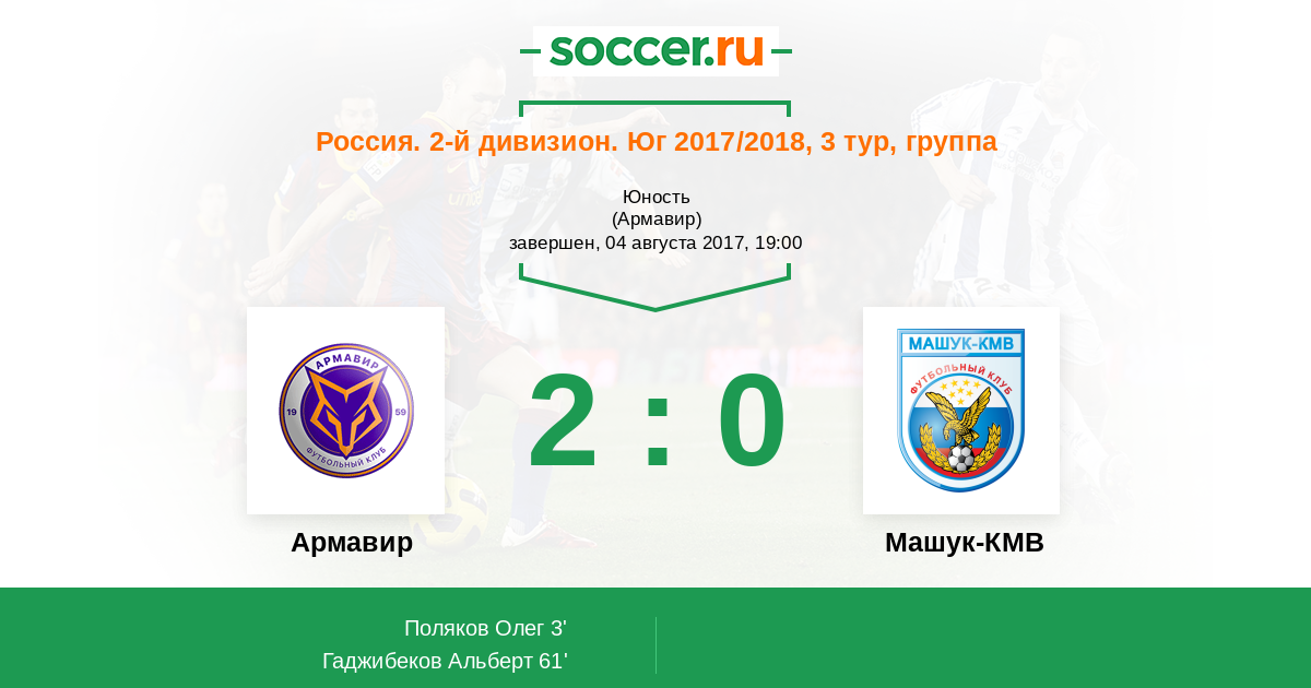 Протокол матча Армавир против Машук-КМВ