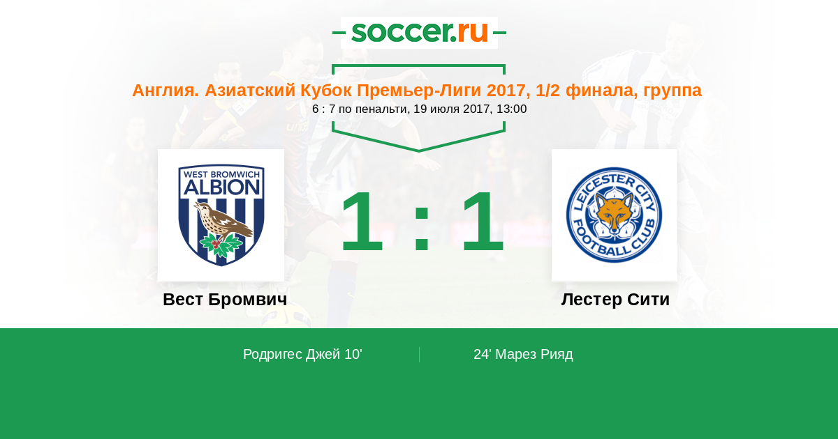 Протокол матча Вест Бромвич против Лестер Сити