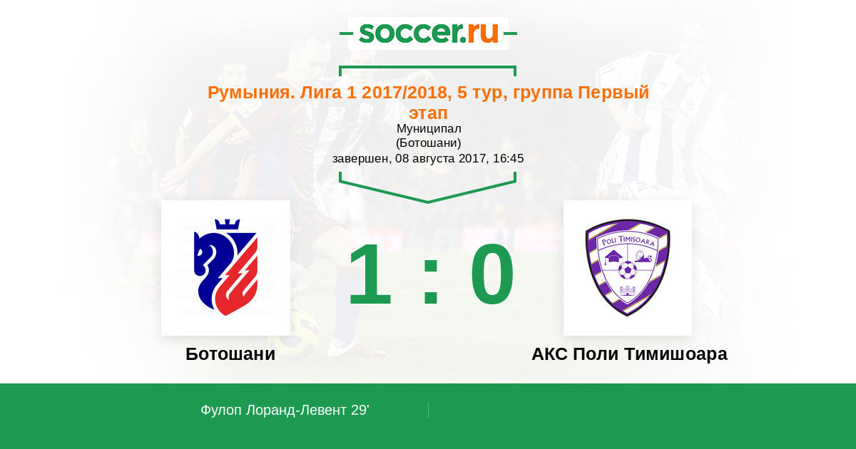 29' (1:0) Фулоп Лоранд-Левент (80) (Попа Даниэль (44))