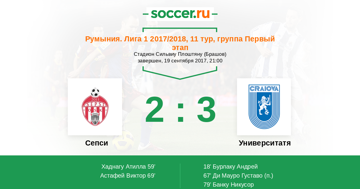 Протокол матча Сепси против Университатя Крайова