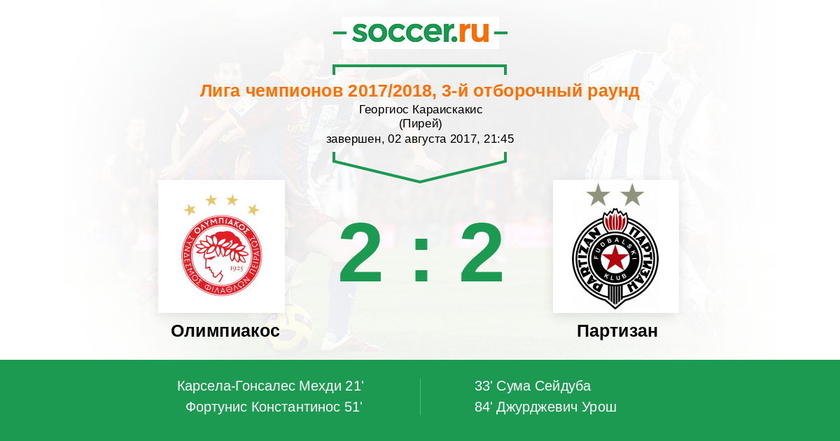 Протокол матча Олимпиакос против Партизан