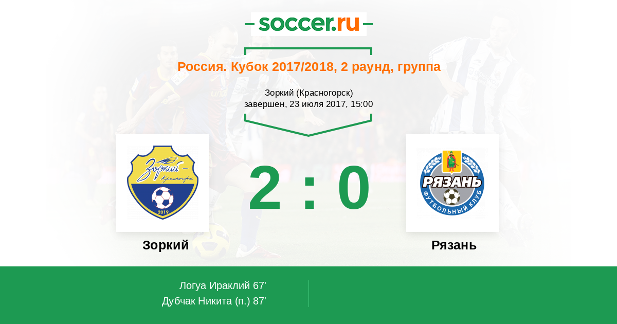 Протокол матча Зоркий против Рязань