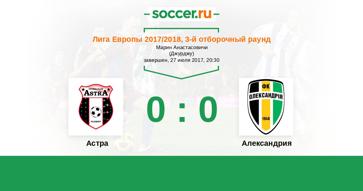Протокол матча Астра против Александрия