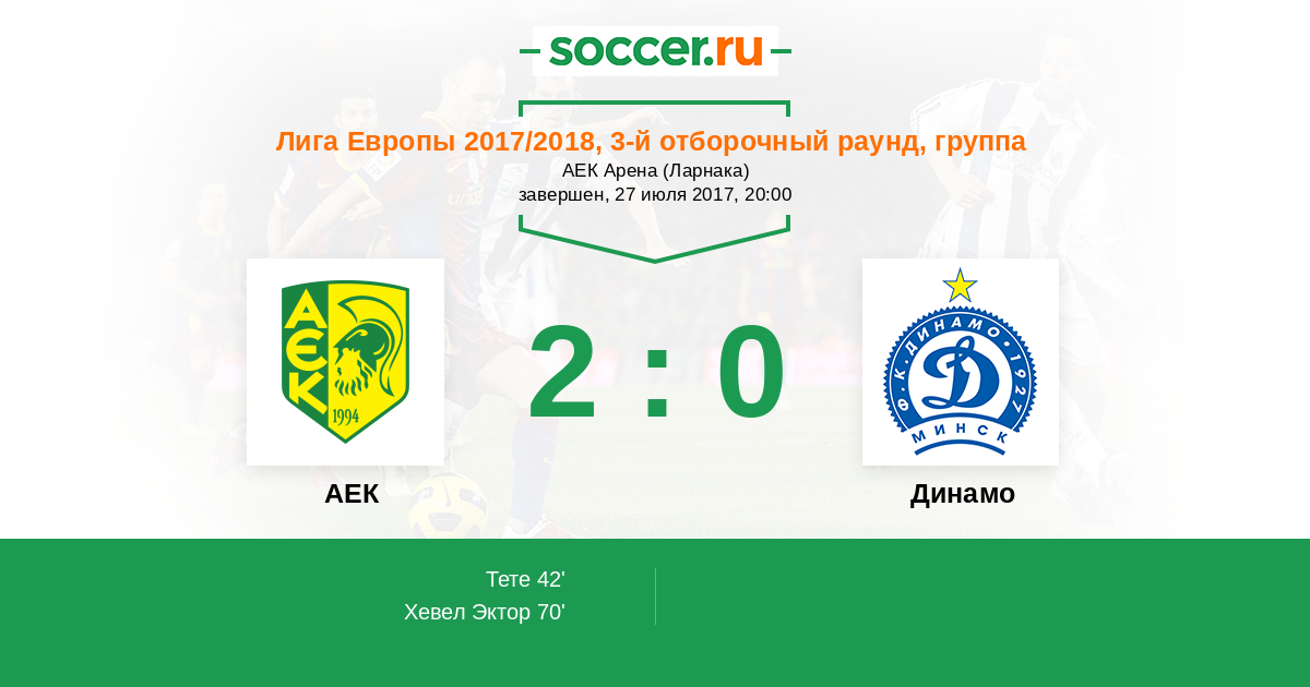 Протокол матча АЕК против Динамо