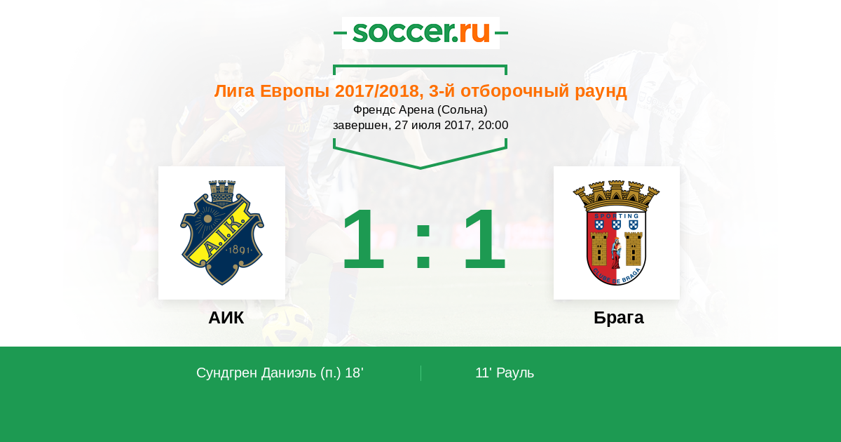 Протокол матча АИК против Брага