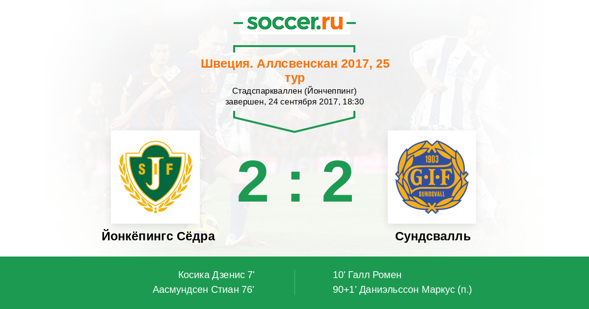 Протокол матча Йонкёпингс Сёдра против Сундсвалль
