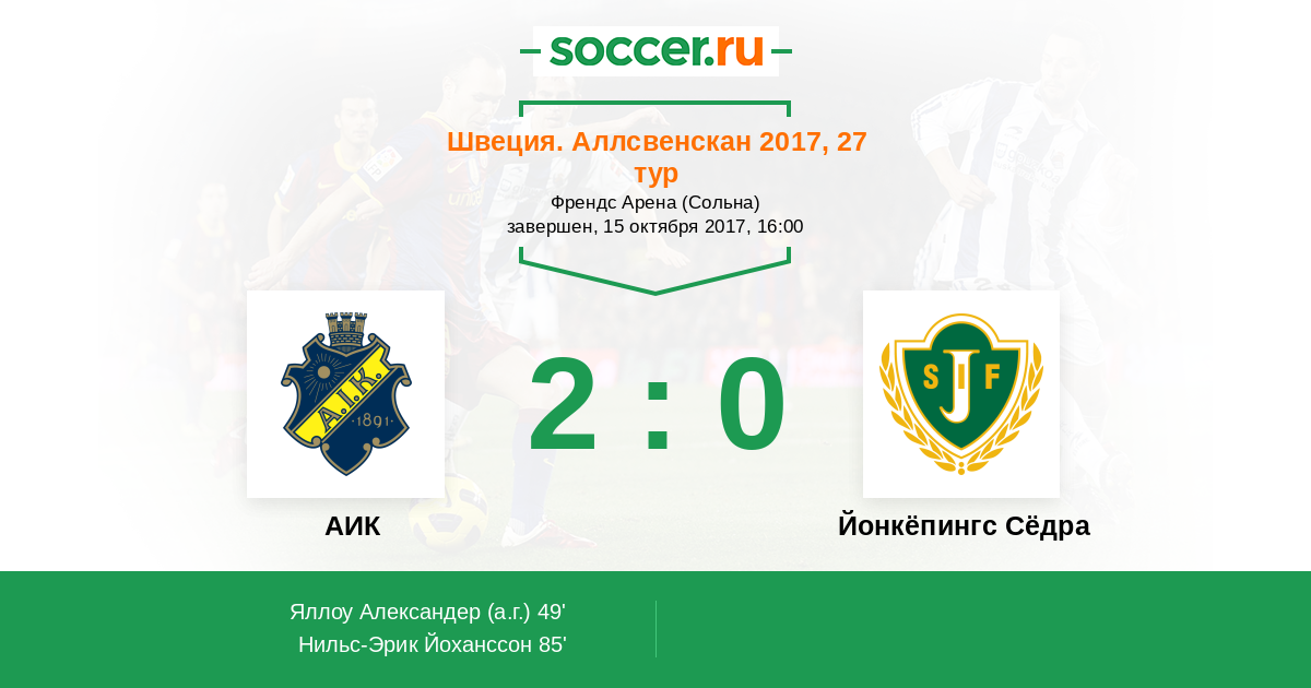 Протокол матча АИК против Йонкёпингс Сёдра
