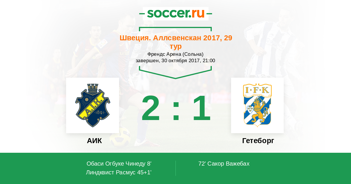 Протокол матча АИК против Гетеборг
