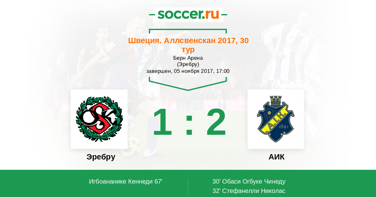 30' (0:1) Обаси Огбуке Чинеду (20) (Нильс-Эрик Йоханссон (4))