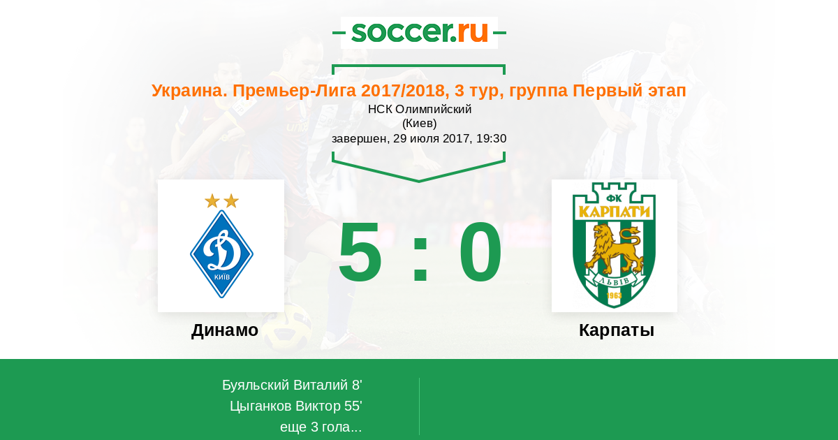 Протокол матча Динамо против Карпаты