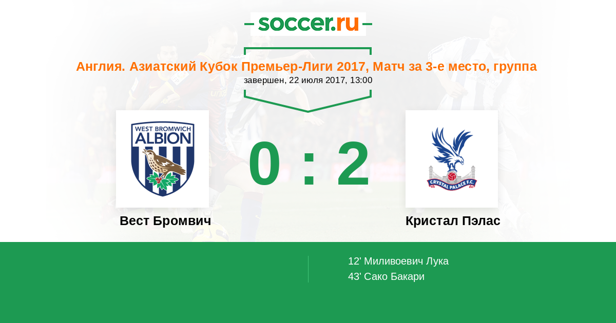 Протокол матча Вест Бромвич против Кристал Пэлас