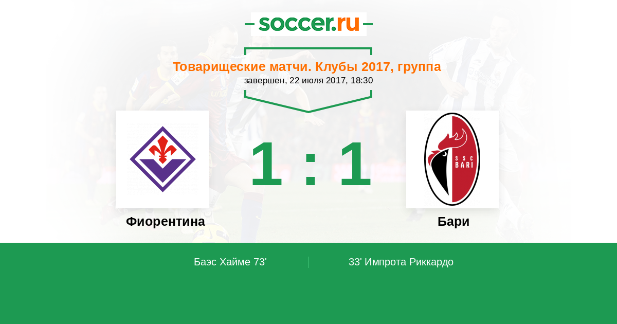 Протокол матча Фиорентина против Бари