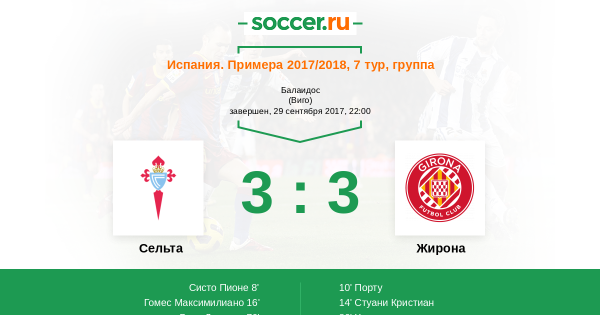 Протокол матча Сельта против Жирона