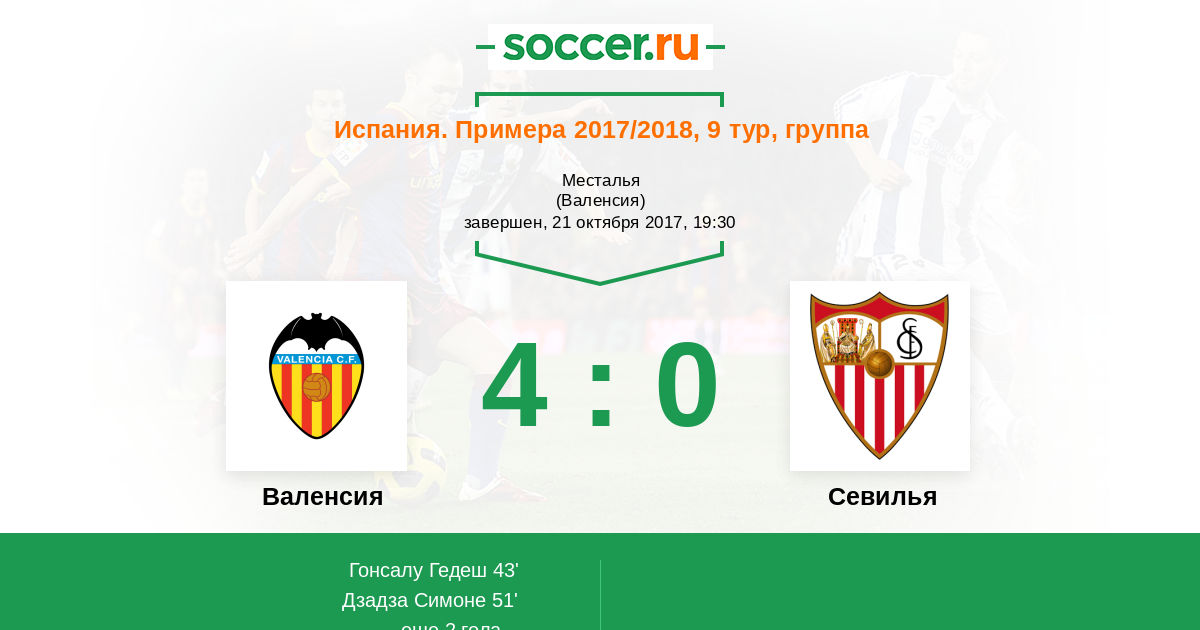 Протокол матча Валенсия против Севилья