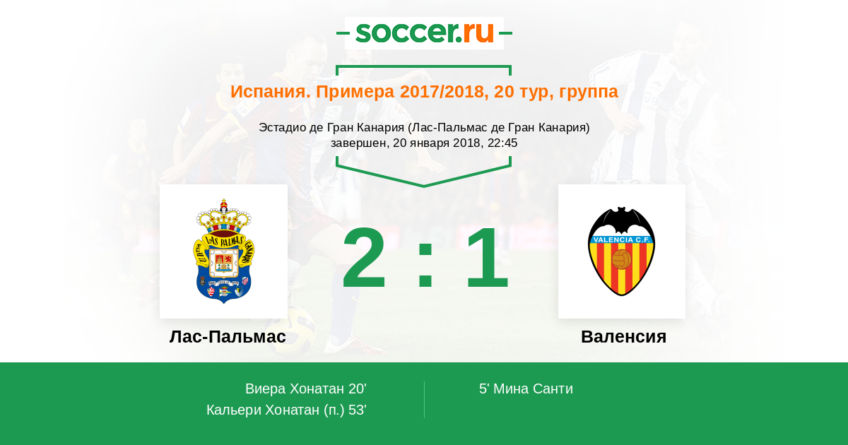 Протокол матча Лас-Пальмас против Валенсия
