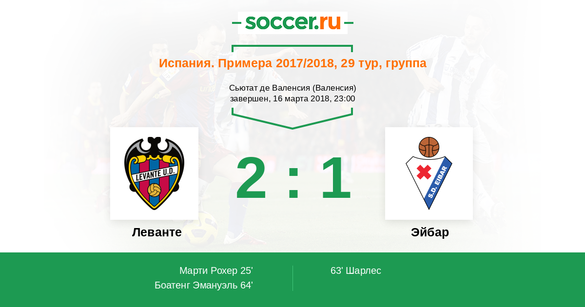 Протокол матча Леванте против Эйбар