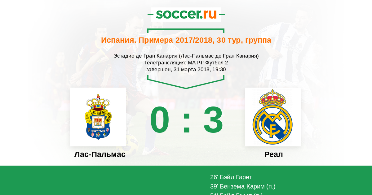 Протокол матча Лас-Пальмас против Реал