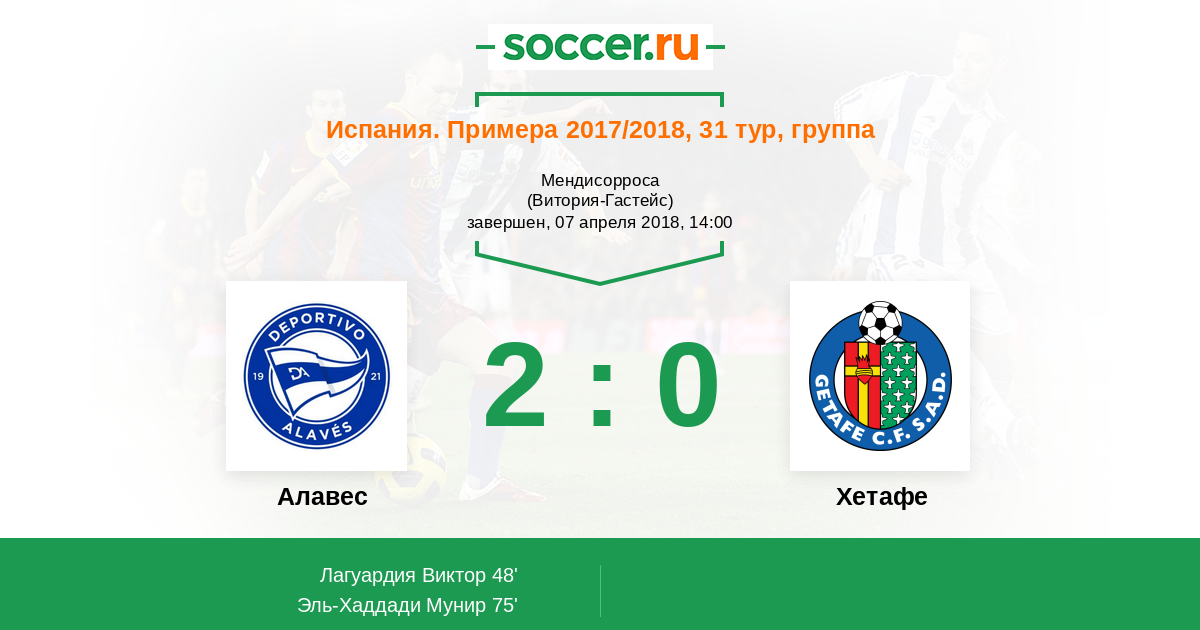 Протокол матча Алавес против Хетафе