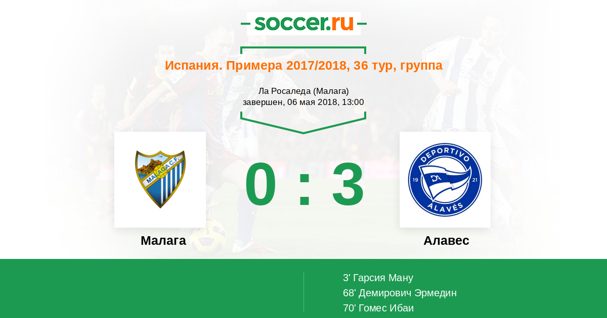 Протокол матча Малага против Алавес