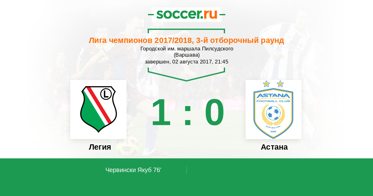 Протокол матча Легия против Астана