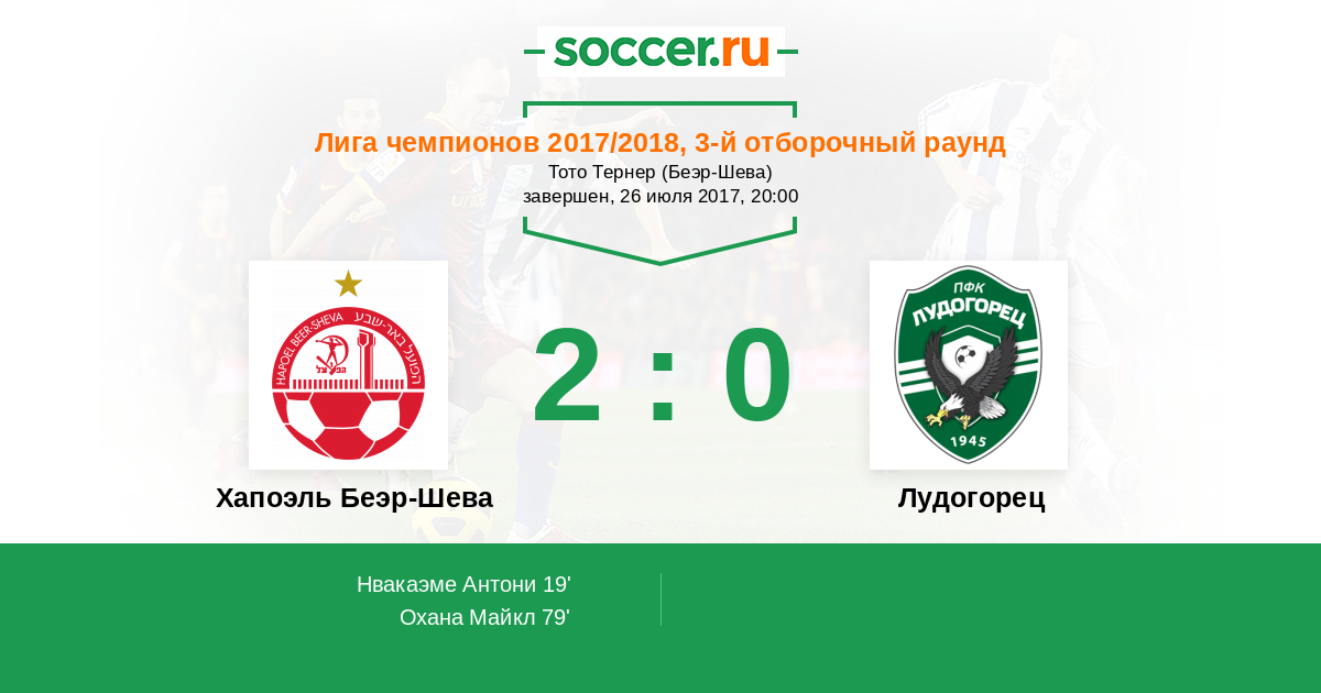 Протокол матча Хапоэль Беэр-Шева против Лудогорец