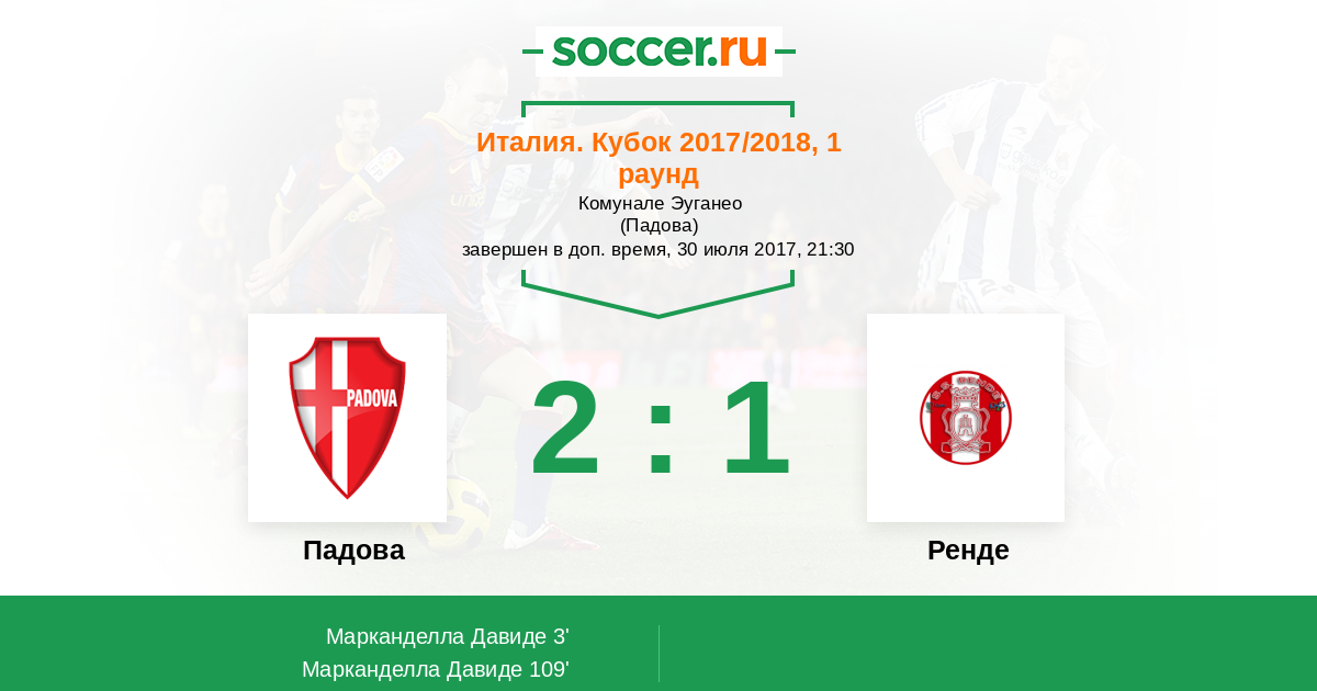 Протокол матча Падова против Ренде