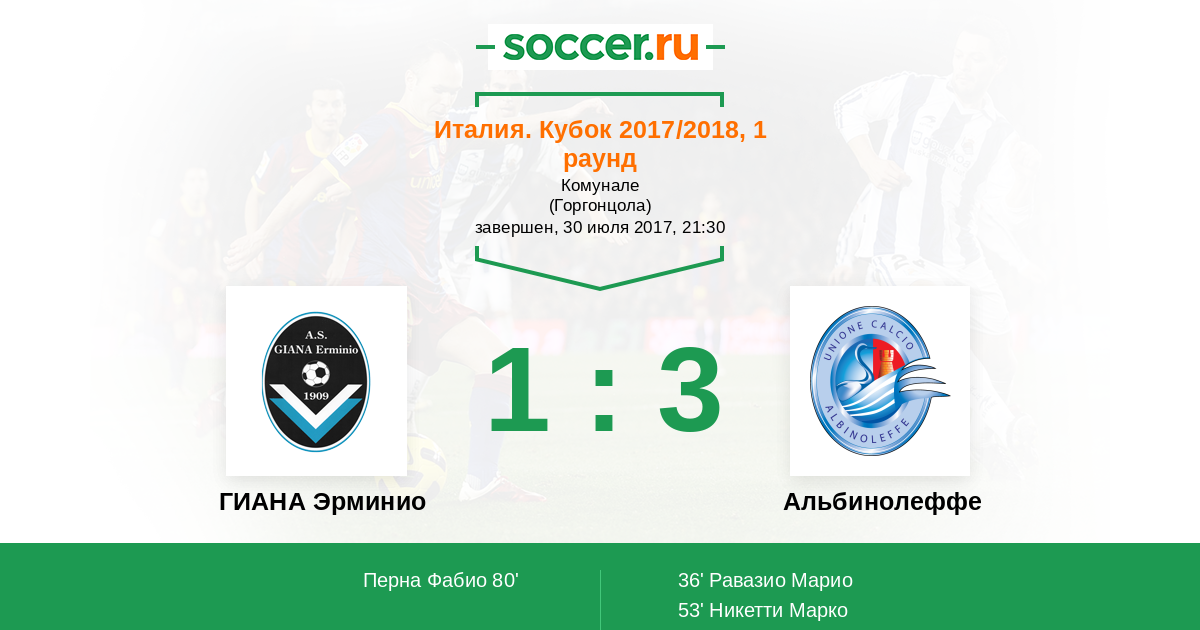 Протокол матча ГИАНА Эрминио против Альбинолеффе