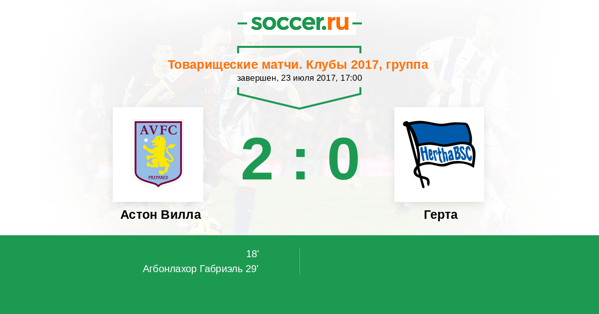 Протокол матча Астон Вилла против Герта