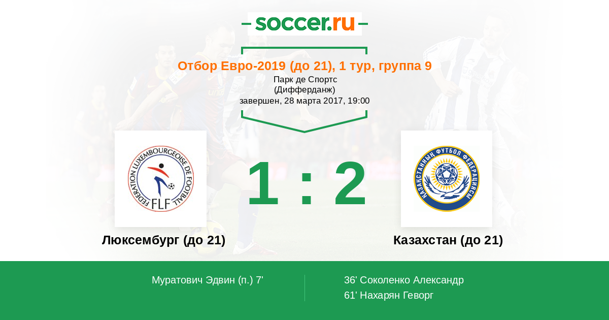 Протокол матча Люксембург (до 21) против Казахстан (до 21)
