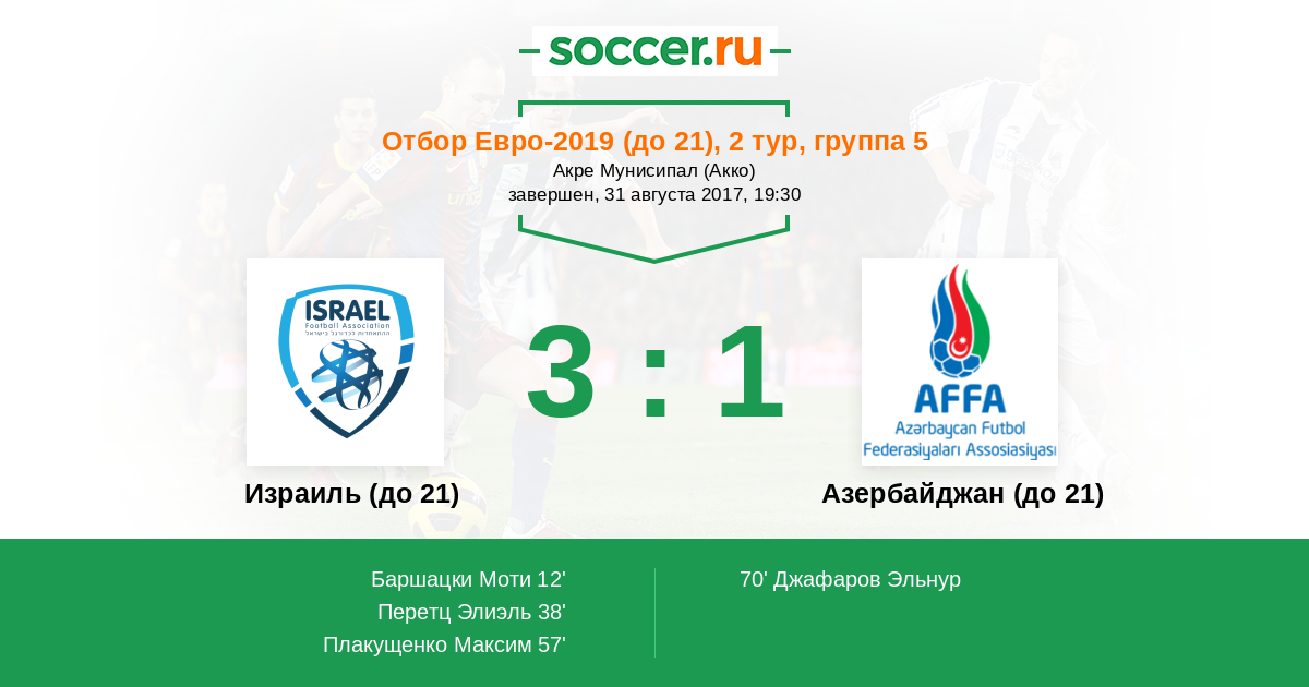 Протокол матча Израиль (до 21) против Азербайджан (до 21)