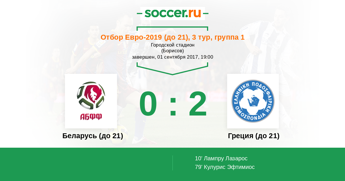Протокол матча Беларусь (до 21) против Греция (до 21)